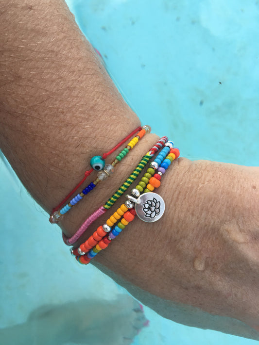 Chakras are centers of energy. Each color represents a part of our body. Wearing this bracelet should remind us to take care of each one of them and take time in our daily life to eat healthy, breathe and meditate. The joyful energy we receive from the rainbow colors can make us feel happy, positive, creative and beautiful. Use it with a good intention and enjoy the bohemian look.