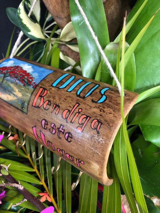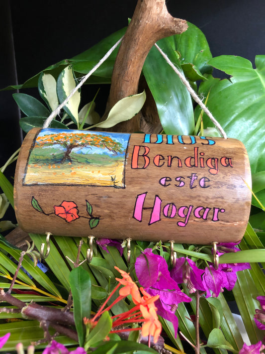 Artesanía - Dios bendiga este hogar - flamboyán rojo