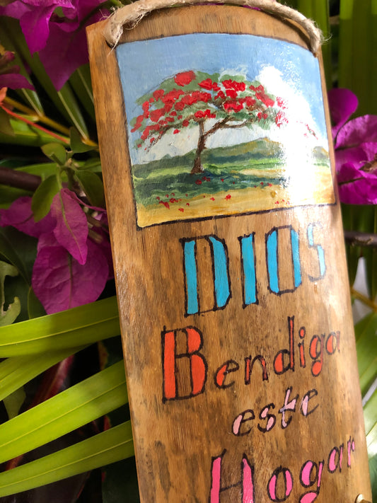 Artesanía - Dios bendiga este hogar - Flamboyán anaranjado vertical