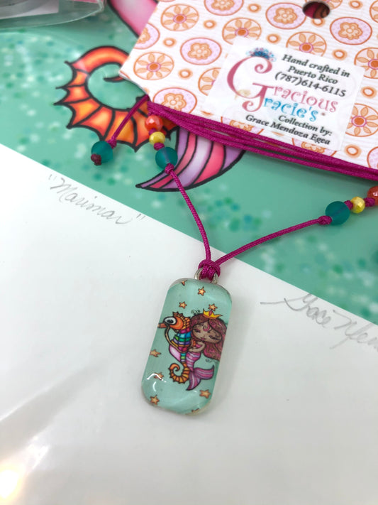 Marimar - Adjustabe nylon necklace with glass pendant