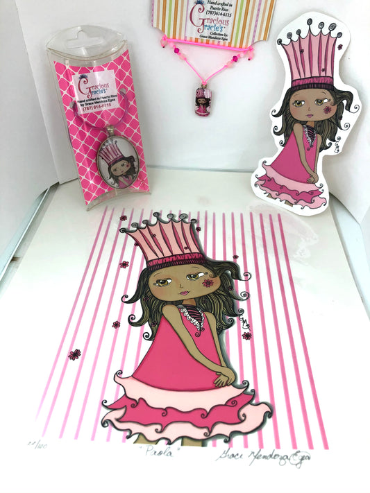 Gracious Gracie's Collection © is a collection of characters and fragments of artworks from my imagination. The bright colors of my art works are as well inspired in my surroundings. Some are mermaids, (which I believe they exist!); cute pets and girls. :) Each girl has its own story and personality. The idea is that every girl and lady identifies with them and finds her inner-child. They are great for collecting and they also make a great gift.