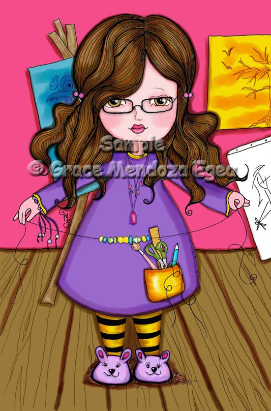 Since my childhood I was a doll lover. I always try to draw them, but I wasn't able to do it right until I turned 18, when I went to an Art Summer Camp in Elsa, Illinois. That was my first formal art classes. There, I discover my drawing talents and also understood how important it is to get instructed for most of us who don't have a perfect innate spontaneity drawing. After that "glorious" experience, and inspired by all my teachers, I decided to become an art teacher myself to be able to help other people like me. Still, this is a happy journey. A long one where I learn how to become a better artist every single day, discovering new technics and how creative a person can become on this artistic journey using many different mediums. After 12 years of teaching art on my own local art gallery, I decided to put aside my job, and started to develop a line of characters which I called Gracious Gracie's Collection. They are inspired in my happy childhood and in every single little children and young spirited woman who become my student. So far, so good, so I added a few of my oil paintings to my mostly digital artworks, and now turning again to the mixed media compositions, which I enjoy the most! It brings happy memories with my students at art school. There, acrylics, scissors, woods and canvases where all over the place. Today, I sell in local art fairs, shops and different platforms like, Instagram, Etsy, Redbubble and mermaidsdistrict.com. Please, enjoy and support our business. Thank you.