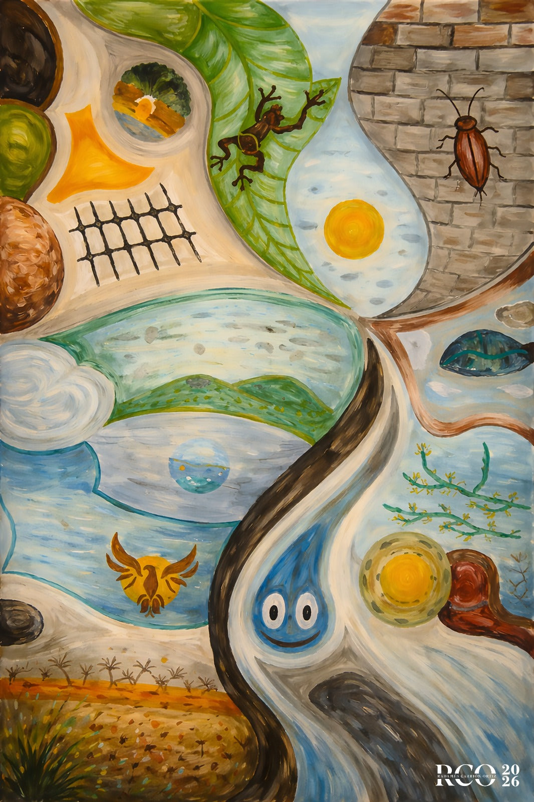 El agua, la tierra, la piedra y los seres vivos conviven como lenguajes de una misma narrativa, recordándonos que todo está conectado. La composición fluida invita al espectador a perderse y reencontrarse, descubriendo significados personales en cada mirada.
